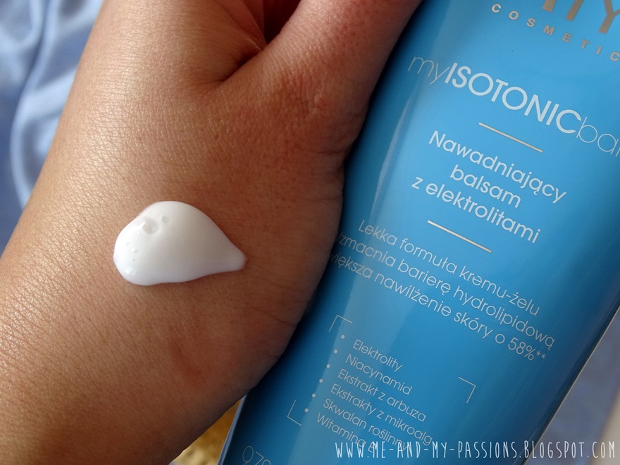 Balsamowaniu towarzyszy przyjemne uczucie chłodzenia, przez które wydaje się on idealny na okres letni! Chociaż uważam, że będzie również świetnym wyborem dla osób, które nie lubią używać balsamów. Ten jest totalnie bezproblemowy - błyskawicznie się wchłania, nie zostawia po sobie żadnej warstwy, nie klei się, ani nie lepi. Po jego zastosowaniu skóra jest wygładzona i nawilżona - nawodniona. Poziom nawilżenia nie jest jakiś mocny, ale przy takiej konsystencji nie ma co liczyć na odżywcze działanie :) Jest na prawdę warty poznania! Do tego ma przyjemny delikatny zapach, trochę 'wodny' - jestem przekonana, że każdemu się spodoba :)